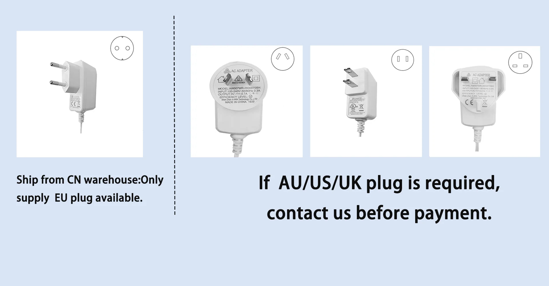 Tipo de enchufe: enchufe europeo,Enchufe estadounidense,Enchufe AU,Enchufe británico