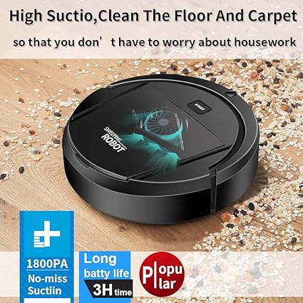 - Potente succión de 1800 Pa y aspiradora inteligente dos en uno: robot aspirador, potente succión de 1800 Pa, muy adecuado para polvo, pelo de mascotas, suelos duros, escombros y alfombras. Silencioso en el trabajo, no nos moleste dormir y ver televisión. Además, el robot aspirador puede lograr la combinación de aspirar y barrer.